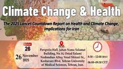 سمپوزیوم بین المللی سلامت و تغییر اقلیم چهارشنبه 5 آذر به صورت مجازی برگزار شد. سمپوزیوم بین المللی سلامت و تغییر اقلیم چهارشنبه 5 آذر به صورت مجازی برگزار شد. این سمپوزیوم با حضور نویسندگان ارشد از نشریه لنست، صاحب نظران بین المللی و ملی حوزه های سلامت،...